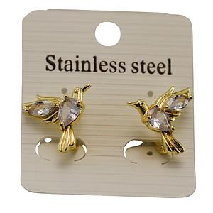 AR261 Arracada Dorada Acero Corazón piedras 1.5 cm