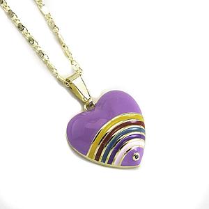 COL23611 Collar Acero Dorado de Corazón con Arcoíris