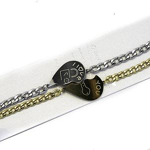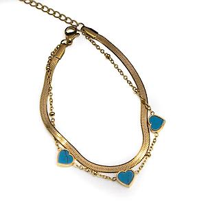 PUL0034 Pulsera Acero Dorado Cadena doble con triple corazón piedra turquesa